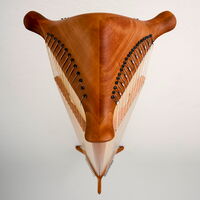 This instrument was given its shape by my wish to bring together different overtone and undertone phenomena that are created by the sound of strings. The result was a visually very appealing, finely crafted, trihedral obelisk with three, respectively six small legs, which can be played in a vertical or horizontal position. Starting with C#, the sound spreads tonally and spatially endlessly in all directions.